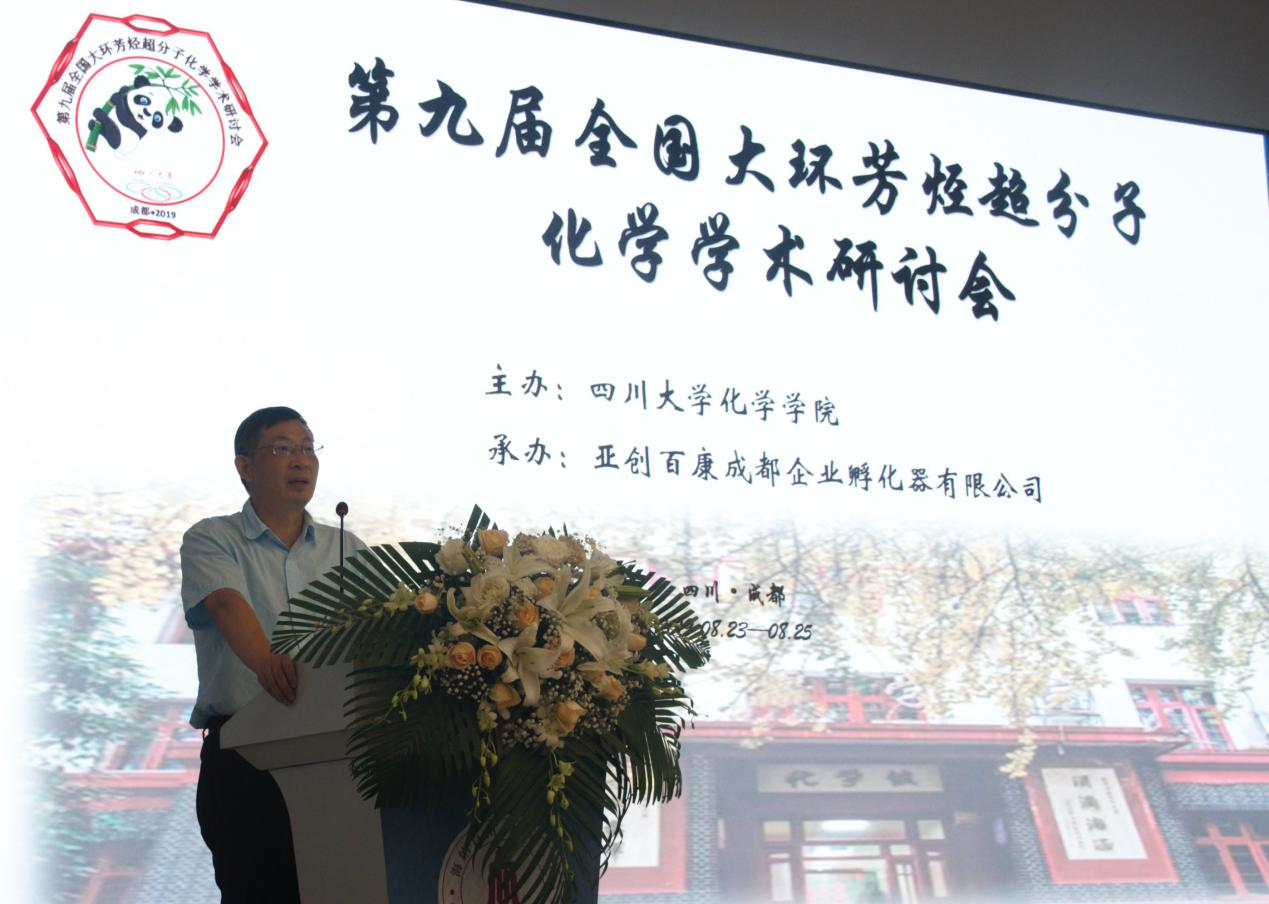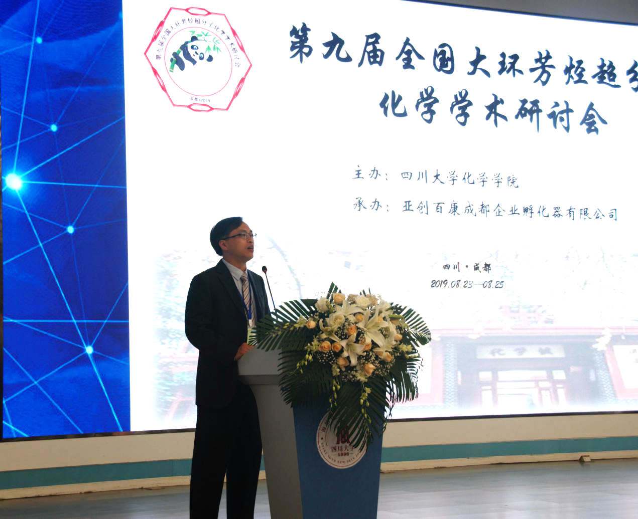8月24日,第九届全国大环芳烃超分子化学学术研讨会在我校汇文楼演播厅(主会场)及东三教150(分会场)举行。本次会议由四川大学化学学院主办。大会汇聚了大环芳烃研究领域的专家和学者,共同探讨大环超分子化学的最新研究进展。来自清华大学、北京师范大学、中国科学院化学所、国家纳米科学中心、复旦大学、上海交通大学、上海有机化学研究所、浙江大学、南开大学、天津大学、南京大学、吉林大学、南方科技大学、新加坡纳米生物国家实验室、澳门大学和四川大学等51所学校及中科院的专家学者、师生共300余人参加了开幕式。