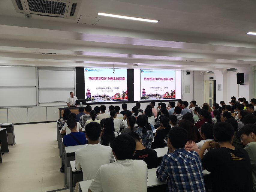 、 2019年8月31日上午,化学学院在江安校区综合楼C107举行了2019级本科生开学典礼。学院党政领导、教导员、辅导员及全体2019级本科新生参加了开学典礼。