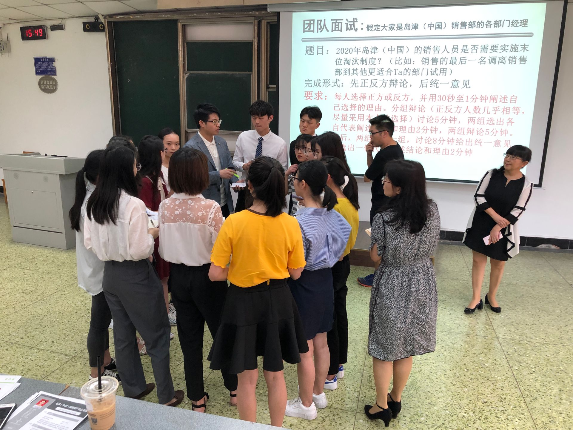 15位同学在台上进行总结讨论