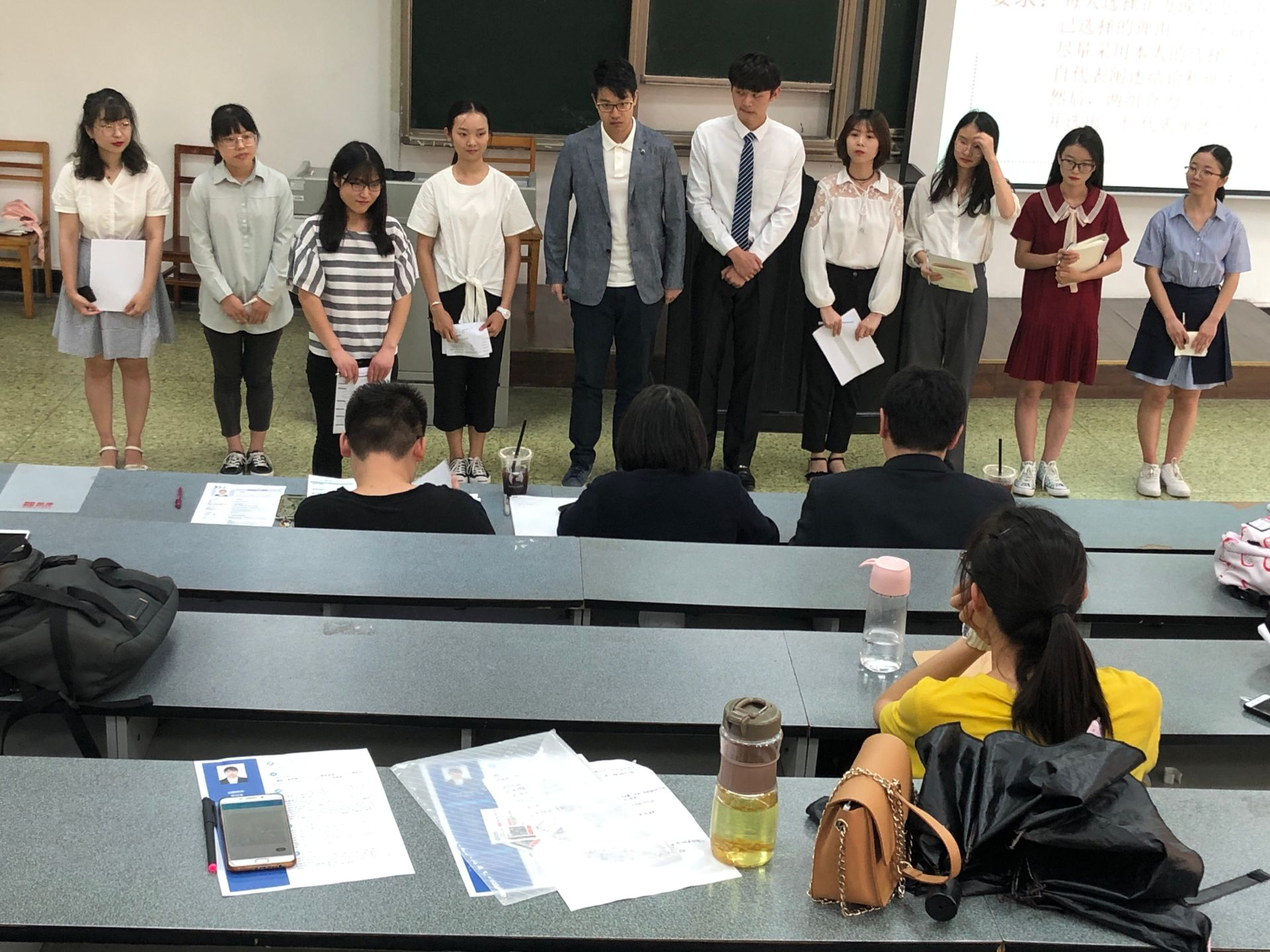 张燕老师用PPT向同学们展示了面试技巧,包括面试前,面试中和面试后的注意事项。马俪老师为大家讲解了简历的制作规范并点评了同学们递交的简历。讲解过后,开始面试,分为两个部分,团队面试和个人面试,最终产生6名同学,获得岛津企业管理(中国)有限公司暑期实习机会。