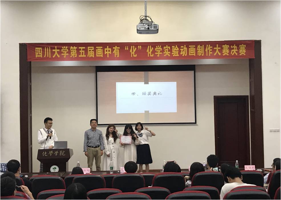2019年6月16日,四川大学第五届画中有“化”化学实验动画制作大赛决赛在化学馆321成功举行。大赛是由四川大学学生工作部(处)武装部、四川大学教务处、共青团四川大学委员会、四川大学化学学院联合主办,由四川大学化学基础实验中心和四川大学化学学院团委学生会共同承办。担任此次决赛的评委有:四川大学艺术学院的李翔老师以及化学学院的寇兴明老师、曾红梅老师、吴凯群老师、王健礼老师、谢均老师。