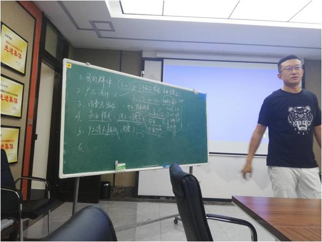 在周斌老师进行了一个简短的自我介绍后,每个团队的成员分别介绍了自己的项目并按照大赛流程在八分钟之内进行了路演。在介绍项目的过程中,老师们以及在场的所有项目的成员们都认真聆听了团队的项目介绍。在每个项目讲解完毕后,周斌老师都会在黑板上列出每个团队所欠缺以及需要改进的地方,对项目进行很好的指导。在活动过程中,同学们也踊跃的提出自己所困惑的地方,周斌老师也给予了极好的意见和建议。