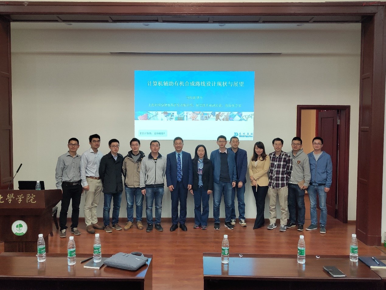 2019年5月8日下午4点,应化学学院邀请,药明康德新药开发有限公司马汝建博士访问我院,并在化学馆321报告厅做了题为“计算机辅助有机合成路线设计现状与展望”的学术报告。马汝建博士首先跟大家分享了药明康德新药开发有限公司的发展历程,然后介绍了有机合成路线设计方法的发展历程。随后马汝建博士介绍了当前已有有机合成路线设计辅助软件现状及面临的挑战。最后通过“人机对比”,对软件进行测试,进行详细介绍了Ackos、Synthia、Alphachem这几款有机合成路线设计辅助软件的优缺点,并对计算机辅助有机合成路线设计进行了展望。在报告过程中,马汝建博士语言幽默风趣,讲解深入浅出,激起了在座老师和同学的浓厚兴趣。在提问环节,马汝建博士与参会的师生进行了热烈的交流和讨论。