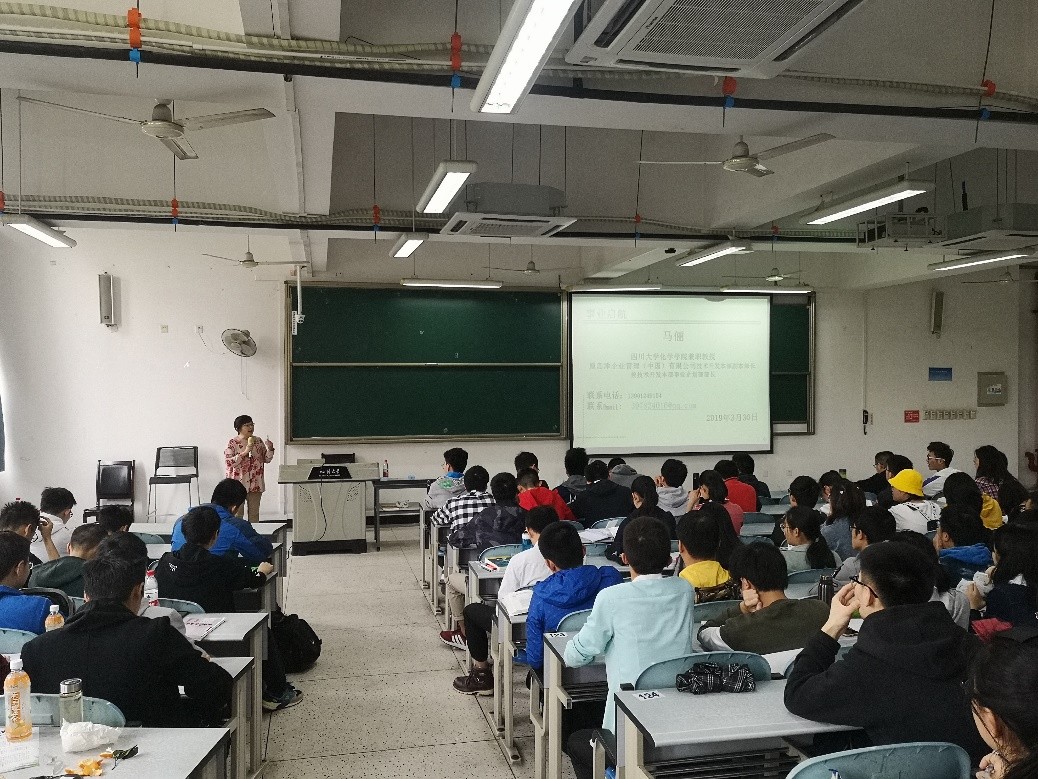 2019年3月30日13:50,在江安校区综合楼C座207教室,四川大学化学学院兼职教授、原岛津(中国)技术开发本部副本部长兼技术开发本部事业企划部部长马俪老师,为本院2018级本科同学带来事业启航系列讲座之“化学与生活”,2018级本科辅导员张若一老师也参加了本次活动。