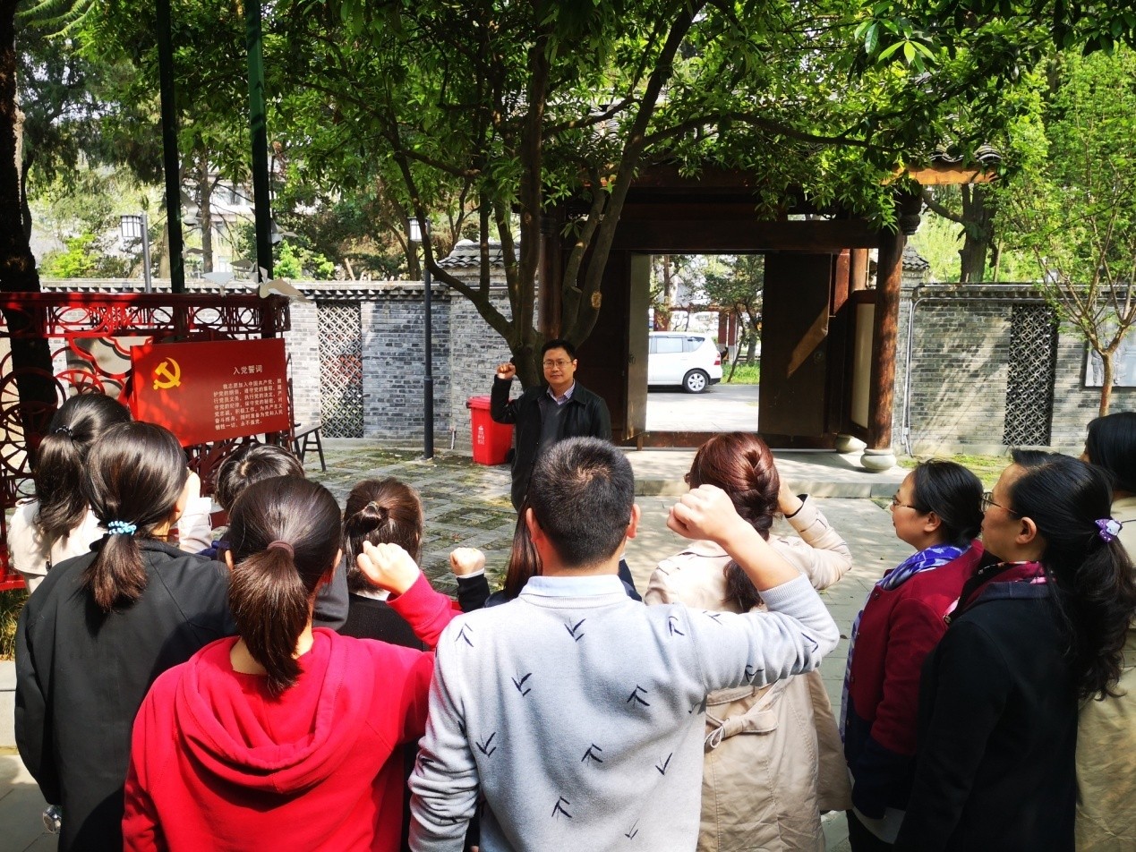 参观结束,王智猛书记带领支部全体党员在江姐雕像前,面对火红鲜艳的党旗,庄严地举起右手,重温入党誓词。在江姐事迹的鼓舞下,大家纷纷表示要学习江姐“追求真理、引领社会的进取精神;不辱使命、勇立潮头的担当精神;坚守信仰、忠于理想的革命精神;心怀天下、舍生取义的牺牲精神”,不忘初心、牢记使命,以自己的实际行动为党增辉添彩,为四川大学建设“双一流”贡献自己的力量。