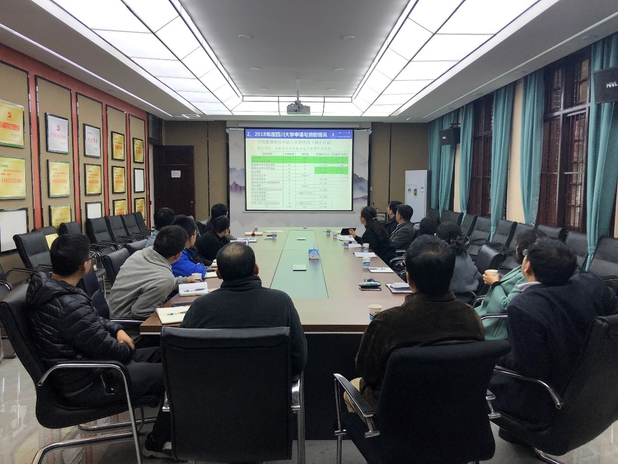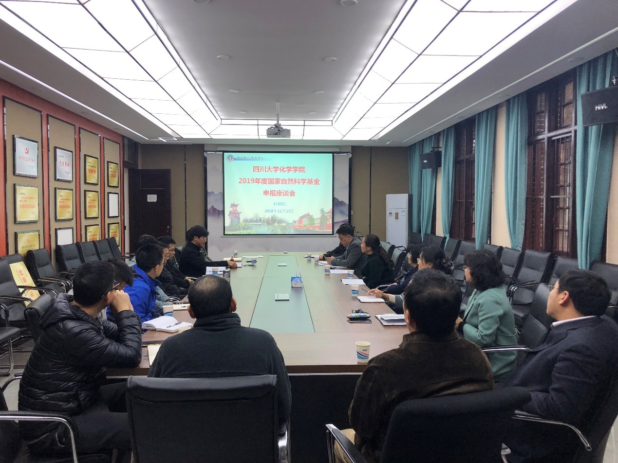 为了做好我院2019年国家自然科学基金申报工作,充分调动广大教师申报积极性,11月13日下午,我院在化学馆122会议室召开2019年国家自然科学基金申报人才项目申报动员暨座谈会。四川大学科研院吴尧副院长、龙毅副部长、科研院基金与成果管理部张麟老师和朱卫华老师、2018年国家杰出青年科学基金获得者彭强老师、 2018年优秀青年科学基金获得者陈力老师和余达刚老师、我院拟申报2019年人才项目的十余名老师等参加了此次座谈会。座谈会由刘波副院长主持。