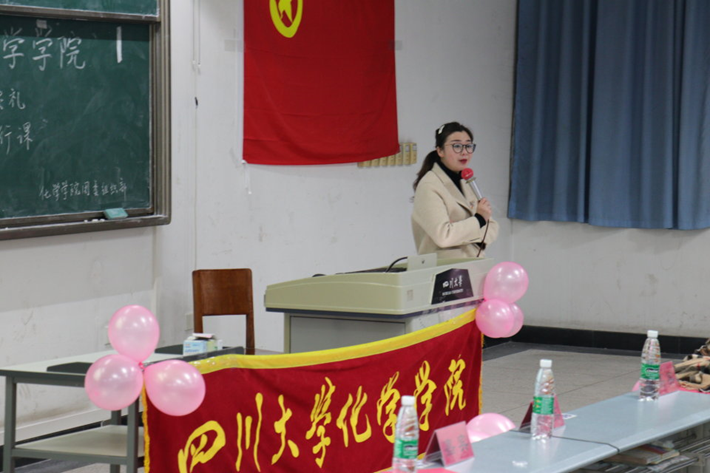 2018年11月16日晚7点,四川大学化学学院2018-2019学年院级开学典礼暨第一次团课在江安校区综合楼c座306教室举行。四川大学团委书记赵露老师、化学学院团委书记来俏老师、四川大学教导员郭明秀老师、化学学院2018级辅导员张若一老师参加了此次活动。