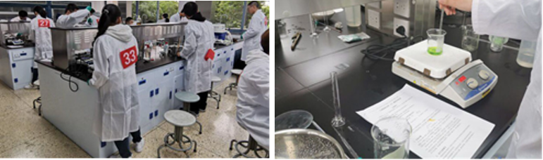 本次复赛分为专业组和非专业组,主要考察选手们独立完成综合性设计实验的能力。老师为每位选手发放实验服、号码牌、实验试题。比赛过程中,选手们遵守实验规范、认真完成实验步骤,实验老师仔细考核选手的实验操作,并予以评分。