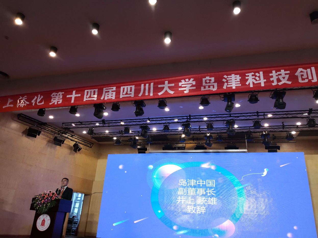 11 月30日下午1时45分,“津上添化”第十四届四川大学岛津科技创新演讲比赛在四川大学望江校区文化活动中心报告厅举行。岛津企业管理(中国)有限公司井上副董事长,事业战略室事业企划部唐橋部长,事业战略室产品企划部国広部长,分析计测事业部营业部郑健经理,美国海洋光学亚太总裁孙玲博士,四川大学绿色化学教育部重点实验室主任、四川省化学化工学会理事长胡常伟教授,化学学院李峰研究员,化学学院郑保战副教授,四川大学兼职教授马俪老师,化学学院党委副书记谢均老师,以及岛津(中国)公司、海洋光学亚洲公司的相关人员参加了此次创新演讲比赛。