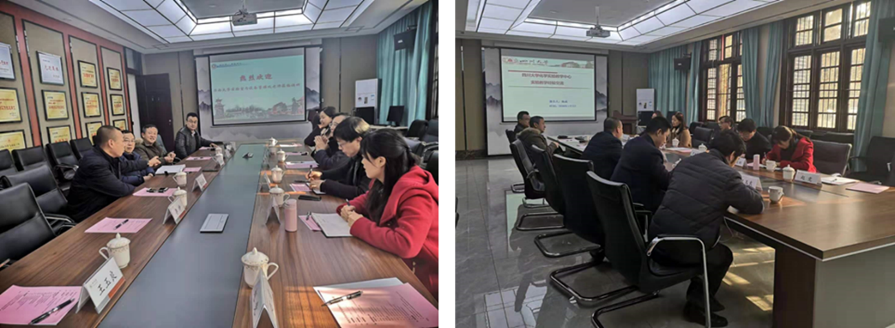 2020年1月7日,西南大学实验室与设备管理处处长袁若、副处长罗书强等一行4人来我院调研。四川大学实验室及设备管理处副处长夏建钢、副处长金永东,化学学院院长游劲松、副院长李坤及化学基础实验中心负责人出席了此次座谈。双方就化学实验教学中心建设与管理相关问题进行了深入交流。
