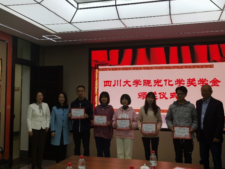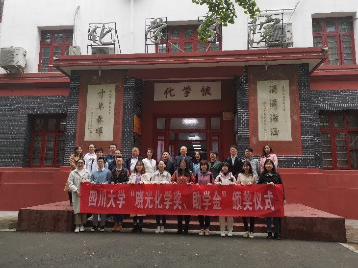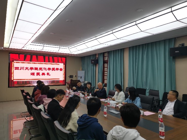 谢均书记主持颁奖典礼并致辞。她对山东省昌邑市的各位领导及王晓光先生表示热烈欢迎,介绍了川大化学学院在师资队伍、人才培养、学科建设等方面的情况,感谢晓光学长一直以来对母校事业发展的支持和对学弟学妹们无私帮助,希望化学学院与昌邑市的合作更加深入,校企产学研结合取得更突出的实效。