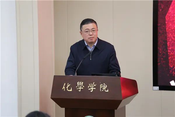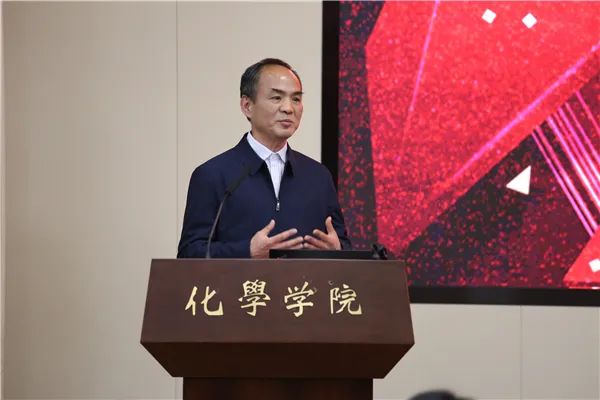 接着,四川顺通实业(集团)有限公司董事长吕蔺强先生讲话。他对化学学院近年来取得的成绩感到骄傲和自豪,这些成就的取得与学院老师们的付出紧密相关。他表达了自己的两个感恩,一个期望。首先,他感恩四川大学和化学学院,在川大上学和留校任教期间的经历,是他一生中最宝贵的财富。其次,他感恩时代,中国已经由“站起来”、“富起来”进入到“强起来”的新时代,技术在这个时代将得到最充分的应用,中国的未来一定是科技立国,它激励着我们年轻的教师们要更敢去想、更敢去拼。最后,他期望在以后的发展过程中,顺通集团和海纳控股能与化学学院的老师有更深层次的交流和合作,进一步加强校企联系,共谋发展,为川大争创一流尽一份力。