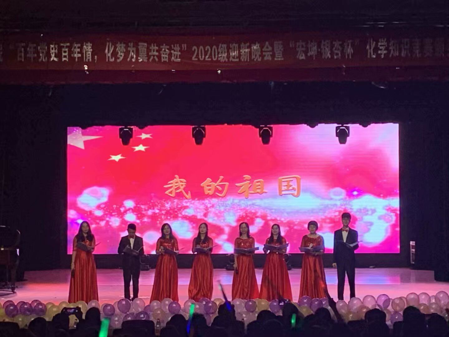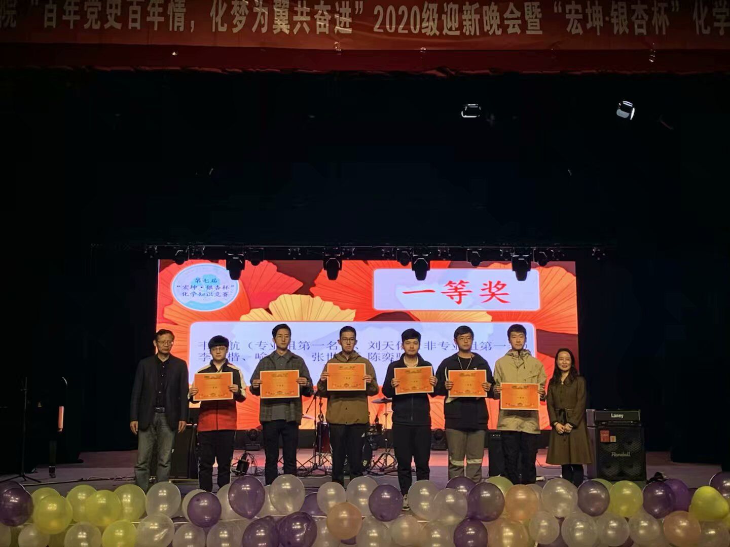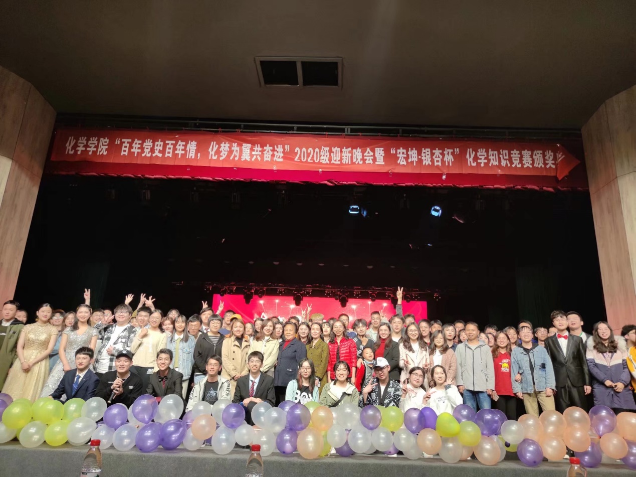 4月11日晚,四川大学化学学院“百年党史百年情,化梦为翼共奋进”2020级迎新晚会暨第七届“宏坤·银杏杯”化学知识竞赛颁奖典礼在江安校区艺术学院小剧场举行。化学学院党委书记谢均、颁奖嘉宾81级校友王瑞林、部分教师及2020级全体同学参加。