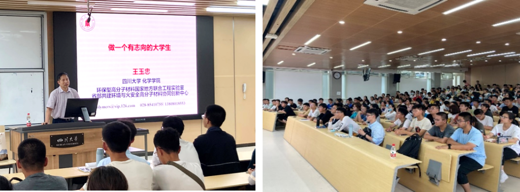 2021年9月8日下午,王玉忠院士在江安校区综C407教室,为2021级本科新生开展题为“做一个有志向的大学生”的专题讲座。王院士以自己的人生经历作为背景,从“选择”和“奋斗”两方面阐述了如何做学问,如何成为学科领域的领军者。希望同学们要勤于思考,开拓创新,为未来的发展打下坚实基础。详细介绍了环保型高分子材料,及其前景和存在的挑战,并鼓励同学们要全面发展,学有所获。