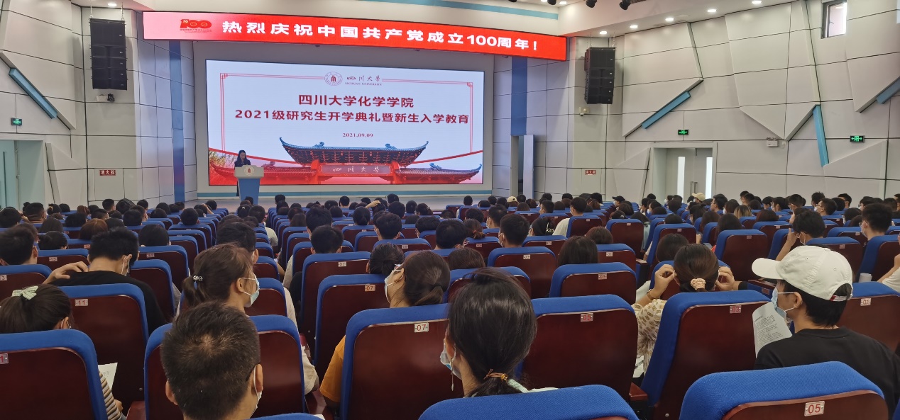 2021年9月9日上午,四川大学化学学院2021级研究生新生开学典礼暨新生入学教育在望江校区汇文楼演播厅顺利举行。学院党政领导、教务老师、辅导员及全体2021级研究生新生参加了开学典礼。