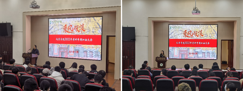 为激励化学学院考研学子在冲刺阶段积极备考,坚持不懈,沉着应战,学院2022届考研冲刺加油会于11月26日在化学馆一楼报告厅举行。学院谢均书记、游劲松院长、辅导员老师、优秀研究生学长及化学学院2018级全体考研学生参加了加油会。