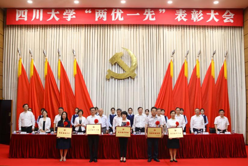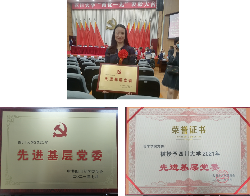 为庆祝中国共产党成立100周年,激励学校各基层党组织和广大党员干部学习先进、争当先进、赶超先进。7月2日,学校召开“两优一先”表彰大会,隆重表彰学校先进基层党组织和优秀共产党员、优秀党务工作者。化学学院党委等5个基层党委“四川大学2021年先进基层党委”称号,谢均书记作为代表上台领奖。