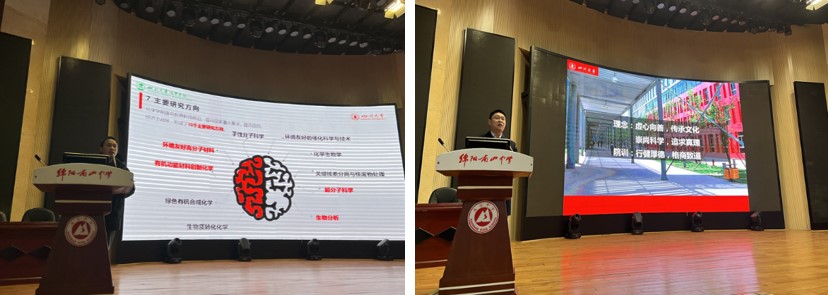 宣讲会在南山中学第二学术厅举行,由南山中学招办主任王静主持,王主任介绍了嘉宾,考生和家长共400余人参加了宣讲会。南山中学党委书记、校长徐勇致欢迎辞,徐校长感谢四川大学对南山中学的厚爱,希望南山中学进一步加强与四川大学的合作,为国家培养和输送更多人才。四川大学招办副主任廖爱民对南山中学长期以来的支持表示感谢,接着对四川大学的历史发展、优势学科、本科教学特色、校园生活等方面做了详细介绍。化学学院郑成斌副院长从化学学院的办学历史、学科建设、学生培养等方面全方位展示了化学专业的特色和优势,着重介绍了化学强基计划招生和培养模式。商学院李小平副书记以商学院的教学理念为切入点,介绍了学院的学科体系、师资队伍及本科教育特色,阐释了商学院“行健厚德,格商致道”的院训内涵;华西口腔医学院张雪峰医生从介绍口腔医学的概念入手,讲述了口腔医学的行业现状和人才缺口,结合华西口腔人才培养的优势和近几年录取情况,鼓励南山学子积极报考。