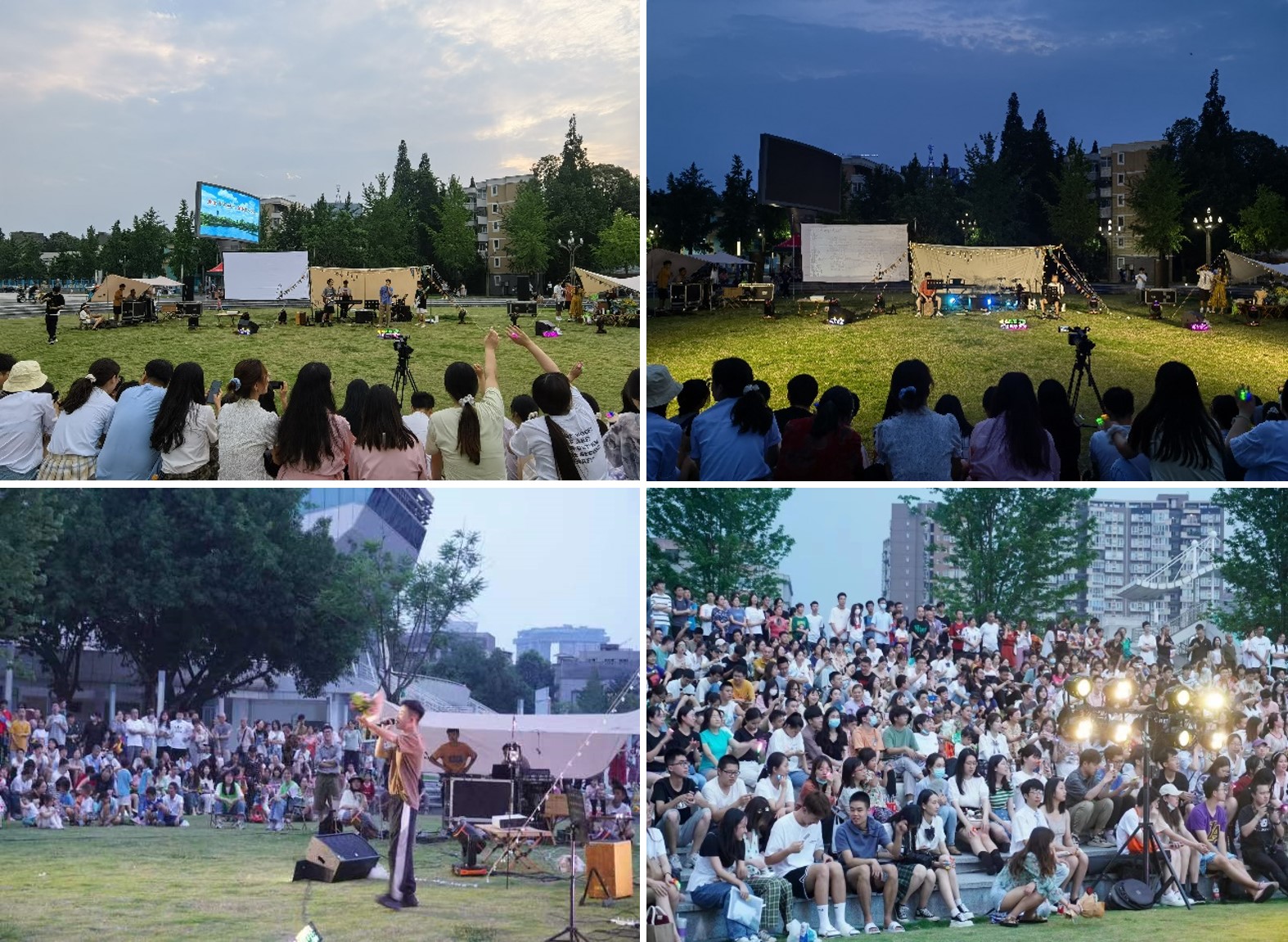 为给2022届学院毕业生的校园生活添上一段精彩的记忆,我院于2022年6月20日晚在望江体育馆前举办了“唱响青春之歌,化出精彩未来”草坪音乐会,学院党委书记谢均、辅导员和2022届毕业生参加了本次活动。
