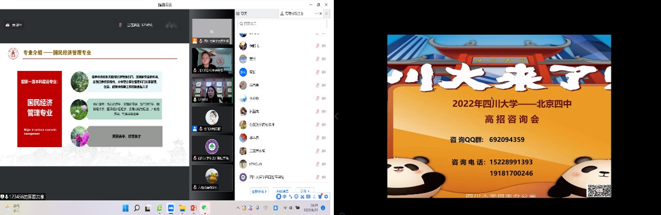 6月22日-6月26日高招集中咨询期间,化学学院作为四川大学北京招生工作组,开展了针对北京考生和家长的线上宣讲及咨询会,为北京地区的考生和家长介绍四川大学各个专业情况及报考相关政策,吸引优秀生源报考川大。