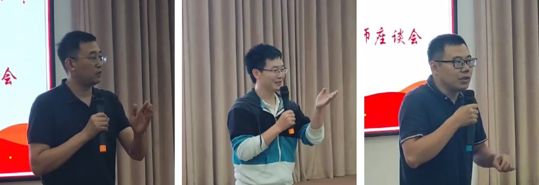 学院三位优秀青年代表也分享了自己的成长经验。曾小明老师强调青年教师要专注一个科研方向持续深入研究并要积极进行学术交流;余达刚教授分享了自己在选择研究领域和方向的心得体会;朱剑波教授分享了自己回国后实验室组建和研究生培养的感受与经验。