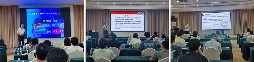 游劲松院长做“化学学院院情与发展思考”的报告,介绍了学院历史沿革、基本情况、学院发展面临的瓶颈问题和工作计划四个方面的内容。游劲松院长还通过“研究生育人职责与艺术”的报告和青年教师分享了自己教书育人的经历和感想。