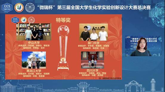 8月21日-24日,“微瑞杯”第三届全国大学生化学实验创新设计大赛总决赛在厦门大学成功举办。由化学学院本科2019级刘麒麟、吴仪、罗毅等3位同学组成的四川大学代表队(指导教师:刘媛、吴凯群、王玉良)脱颖而出,在此次大赛中通过一次答辩直通的方式斩获特等奖。目前该项赛事已成功举办三届,我校学子三届均获总决赛特等奖。