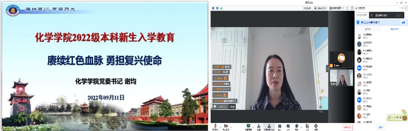 2022年9月11日上午10时,四川大学化学学院2022级本科新生入学教育——“赓续红色血脉 勇担复兴使命”主题讲座顺利举行。本次讲座由化学学院党委谢均老师主讲,党委副书记肖波、辅导员张若一以及化学学院2022级本科新生参加了本次活动。
