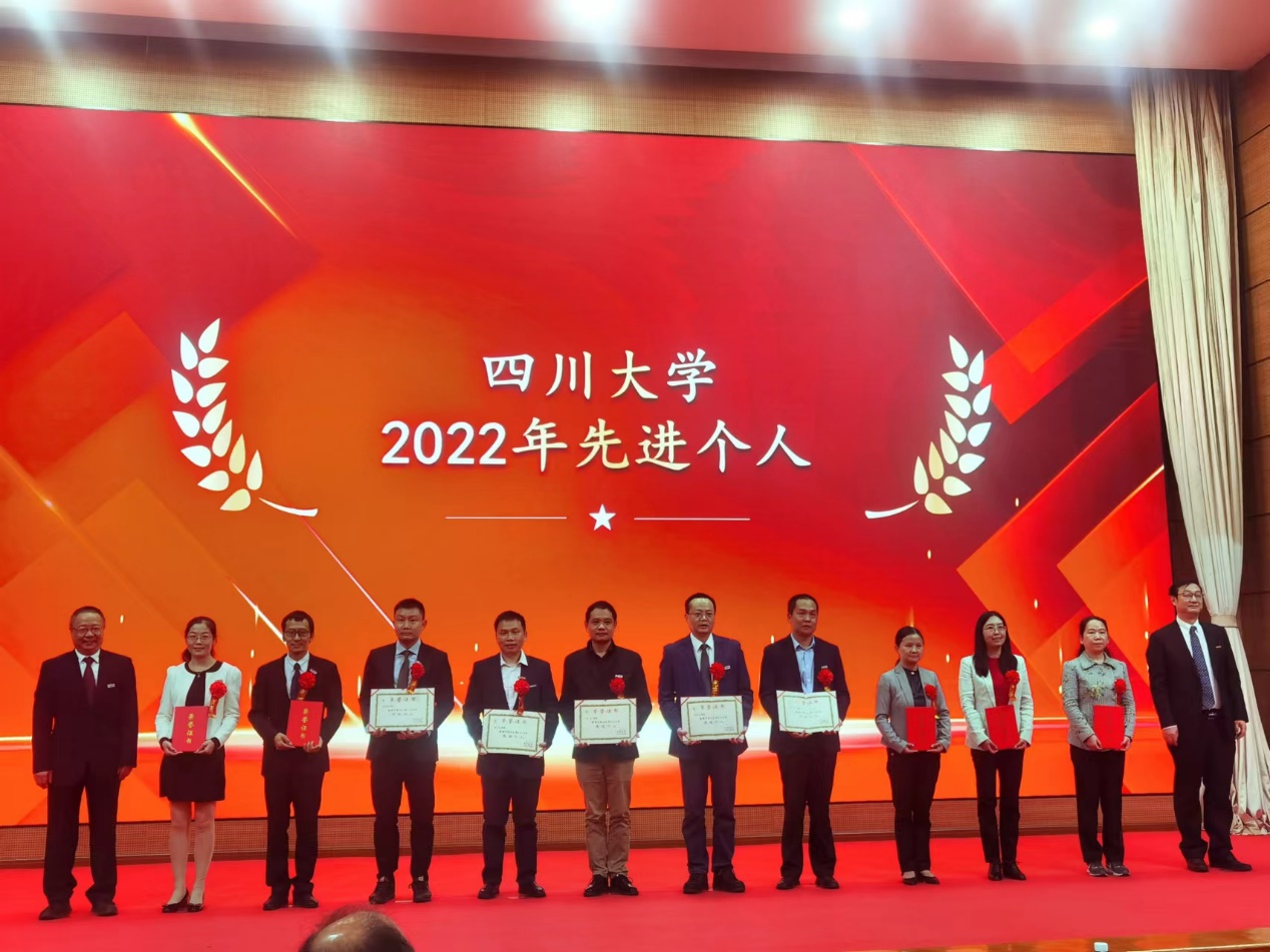 10月10日,在党的二十大即将召开之际,学校召开“丹心筑梦 立德树人 喜迎二十大”2022年表彰大会,表扬先进、树立典型,示范引领、砥砺前行。我院荣获2022年“四川大学先进集体”称号;胡常伟老师荣获2022年“四川大学立德树人奖‘’,周向葛老师荣获“四川大学第九届卓越教师奖”,黄艳老师荣获第八届“姜维平优秀教学奖”,汪秀丽老师荣获“四川大学优秀党务工作者”,赵海波、杜晓燕、郑成斌三位老师荣获2022年“四川大学先进个人”称号。