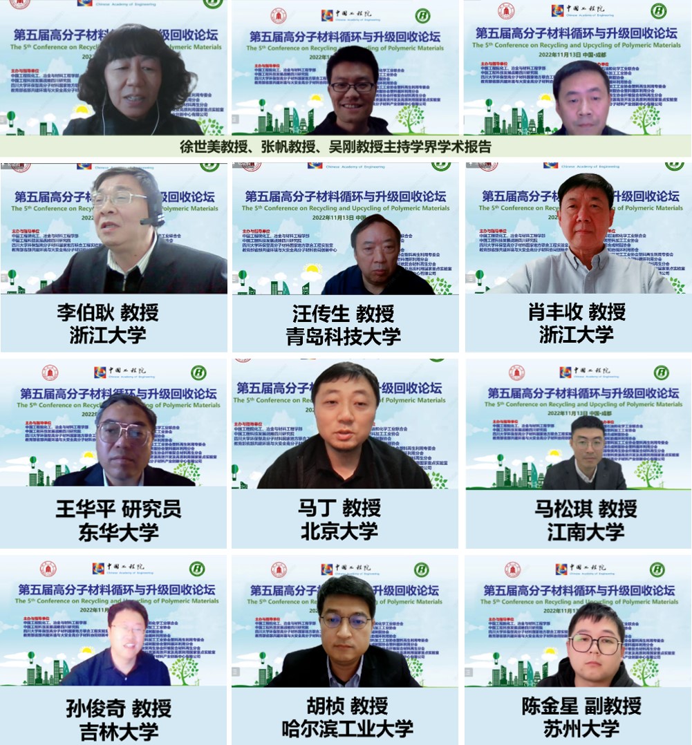 2022年11月13日,在中国工程院化工、冶金与材料工程学部的大力支持下,由我院环保型高分子材料国家地方联合工程实验室发起并具体承办一年一届的“高分子材料循环与升级回收论坛”第五届会议成功召开,按照疫情防控要求采取线上会议。该论坛已成为中国工程院化工、冶金与材料工程学部的品牌会议之一,本次会议王玉忠院士为大会主席,汪秀丽教授为执行主席。中国工程院化工、冶金与材料学部主任谭天伟院士、四川大学校长李言荣院士分别在开幕式上致辞。