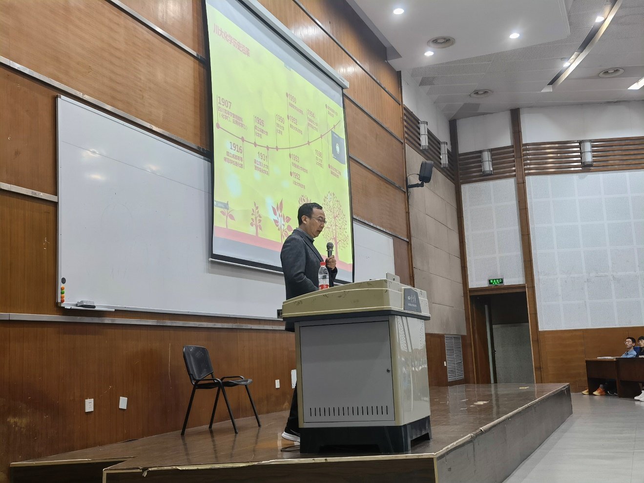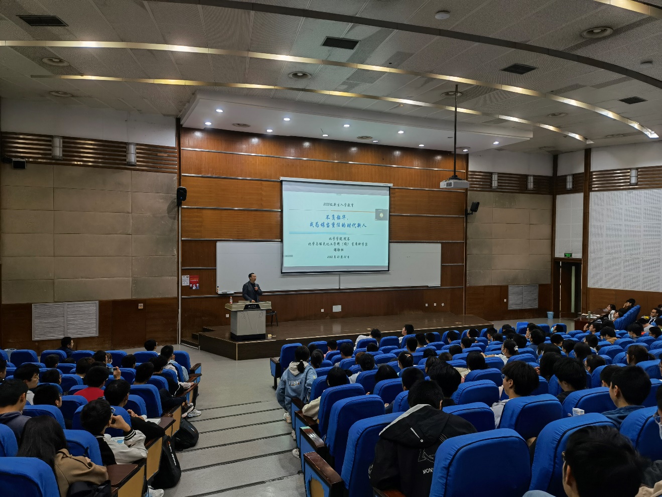 为进一步落实党的二十大报告中关于“深入实施人才强国战略”精神,2022年10月12日晚,四川大学化学学院2022级本科新生专业教育——“不负时代,成为担当重任的时代新人”主题讲座顺利举行。本次讲座由化学学院院长、化学与绿色化工科(群)首席科学家游劲松教授主讲,学院党委副书记肖波、辅导员张若一以及化学学院2022级本科新生参加了本次活动。