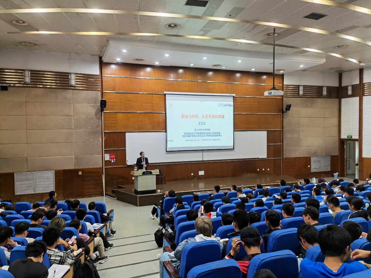 为进一步落实的二十大报告中关于“加快实施创新驱动发展战略”精神,2022年10月26日晚19时,中国工程院院士、化学学院博士生导师王玉忠教授为2022级本科新生带来“勤奋与拼搏,从优秀走向卓越”——专业教育讲座,化学学院党委副书记肖波、2022级本科生辅导员张若一参加了本次活动。本次讲座由肖波老师主持。