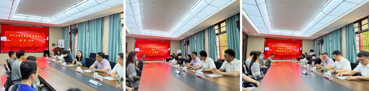 学院党委书记谢均代表化学学院对四川中测标物科技有限公司领导们的到来表示热烈欢迎,感谢公司对学生的关心和学院的支持,并简要介绍了学院近年来学科评估、学生发展、教师团队等方面的基本情况。
