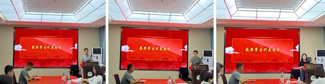 杨嘉伟先生宣读了获奖学生名单,博士获奖代表邓泽鹏、硕士代表杨贝琦和本科生代表李思璐先后发表获奖感言,由衷感谢四川中测标物科技有限公司的肯定、鼓励和关心,感谢学校和学院的培养,表示将带着这份荣誉积极进取、奋发图强、回馈社会。