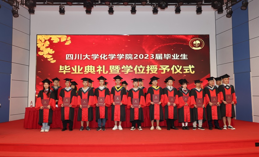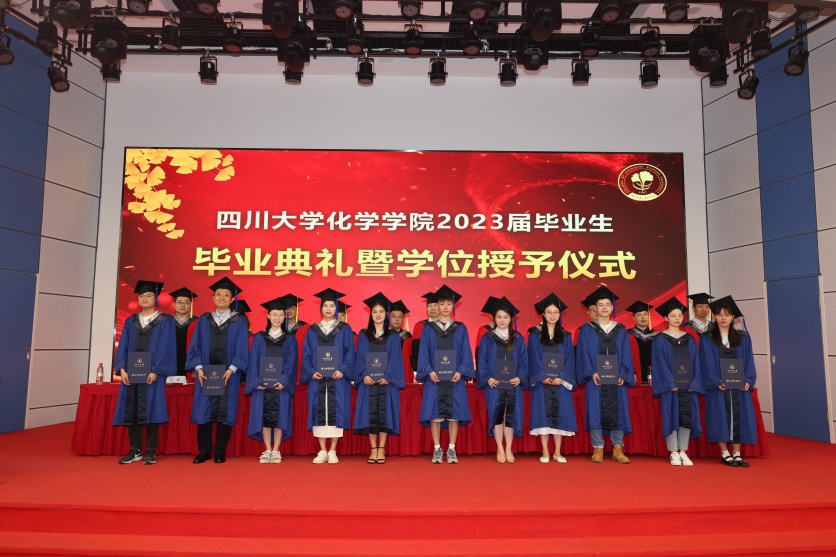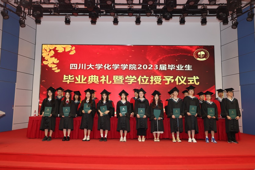 2023年6月20日上午,四川大学化学学院2023届学生毕业典礼暨学位授予仪式在望江校区东三教演播厅举行。中国工程院王玉忠院士、化学学院党委书记谢均教授、教授委员会主任陈华教授、化学学院吕弋教授、汪秀丽教授、杨成教授、王健礼教授、徐世美教授、张程教授、化学学院副院长马利建教授、副院长郑成斌教授、副院长李坤教授,以及全体辅导员老师、毕业生代表参加了此次活动,本次典礼由学院党委副书记肖波老师主持。