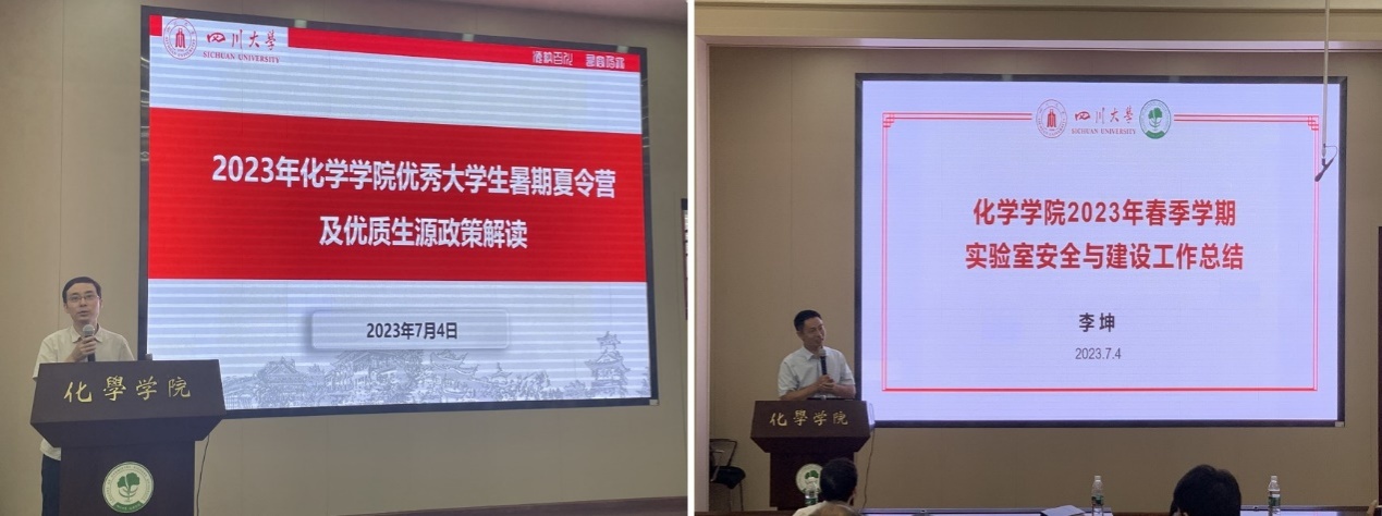 2023年7月4日上午,在化学馆321报告厅召开了化学学院全院教职工大会,会议由学院党委书记谢均主持。