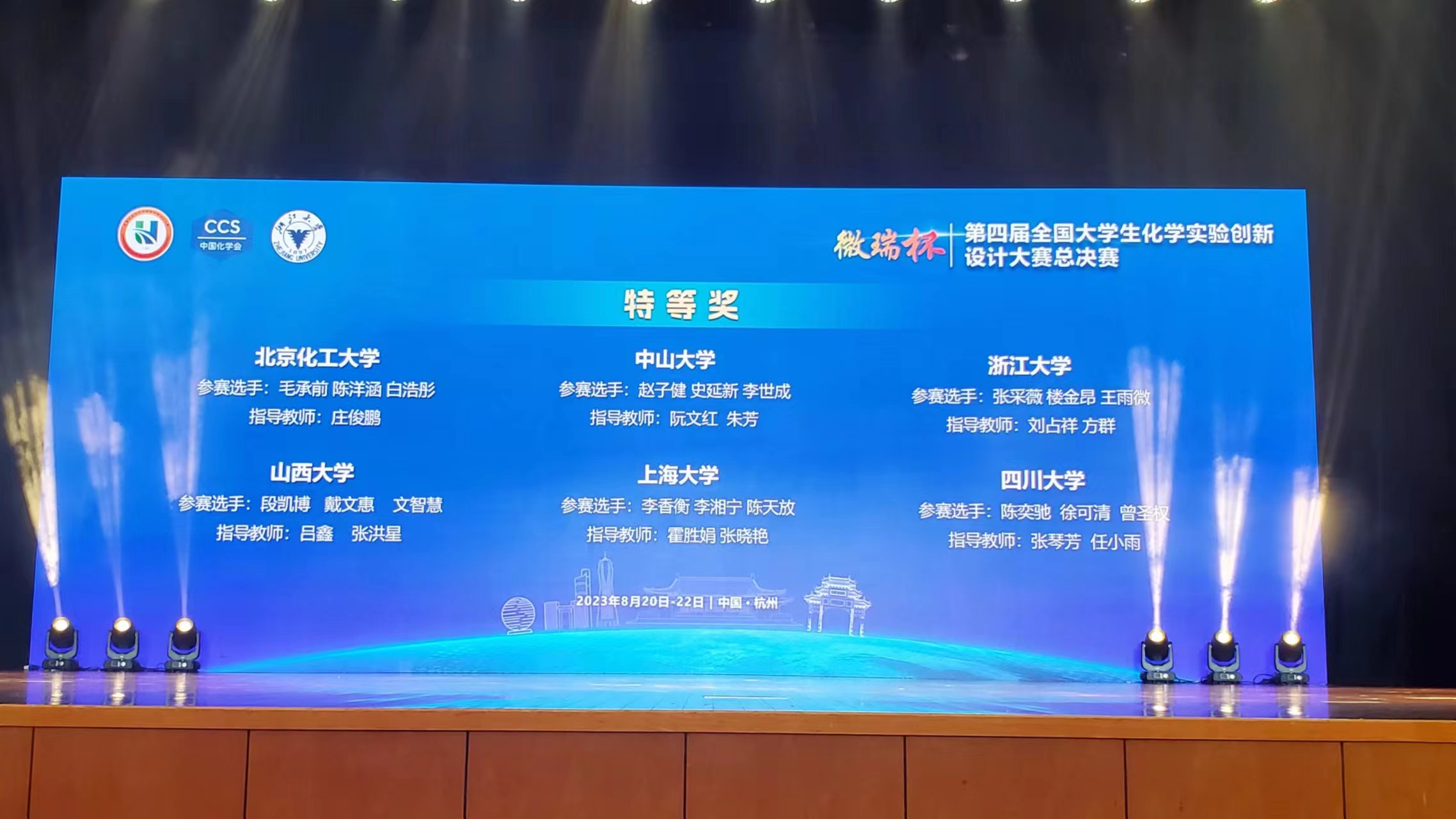 2023年8月20日-22日,“微瑞杯”第四届全国大学生化学实验创新设计大赛总决赛在浙江大学成功举办。化学学院2020级本科生陈奕驰、曾圣权、徐可清三位同学的新创实验作品“n-PrNO2替代HN3的Schmidt型重排反应制备酰胺”以西南赛区一等奖的优秀成绩冲入总决赛,经过激烈的角逐,从1000余支参赛队伍中脱颖而出,斩获全国总决赛特等奖。本次参赛作品的指导教师为化学实验中心张琴芳博士、任小雨博士。目前该项赛事已成功举办四届,我院学子连续四届均获总决赛特等奖。