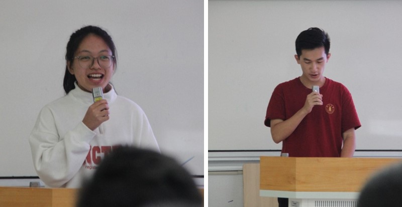 2022级本科生李佳佳代表学长学姐向新同学们致以热烈的欢迎,她分享了自己的“成长秘籍”,适应独立生活,自主学习,大胆尝试,挑战自我,拥抱时代,充实的度过大学四年。2023级本科生杨慕天作为新生代表分享了自己对于未来的展望和如何适应大学生活的个人见解,他表示化学是一门极其重要的基础学科,我们应当不辜负亲人老师的期待,勤奋求学,全力以赴。