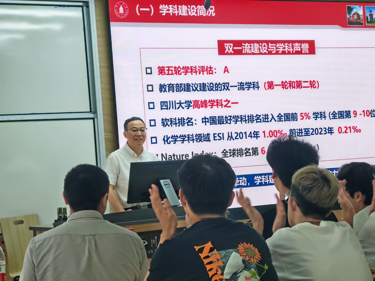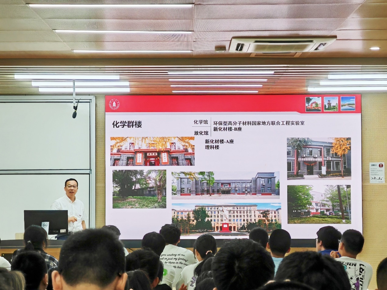 首先,游劲松院长从化学学院历史沿革、学院发展与建设、人才培养、知名校友等方面全方位介绍了化学学院,让同学们更加深入了解学院情况,展现了川大化学人勤耕不辍,勠力同心的精神风貌。