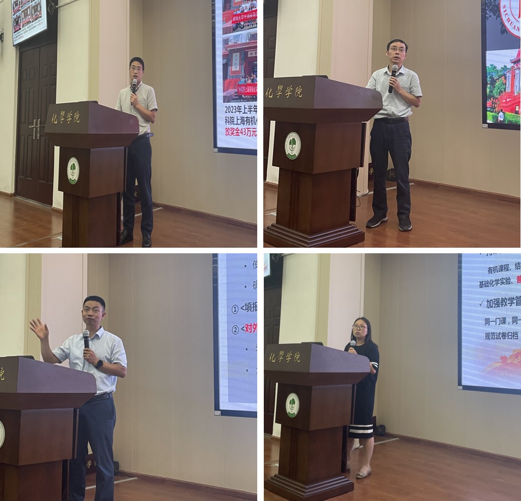 谢均书记传达了学校2023年下半年新学期工作布置会议的精神,介绍了学校“四个原则”、“四项工作要落地见效”、“四项工作要推动”的具体内容,解读了《中共四川大学委员会关于加快推进学校高质量发展 助力教育强国建设的决定》,部署学院下半年工作重点并提出了要求。
