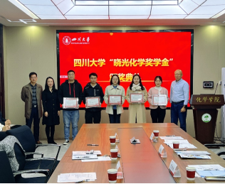 2023年10月20日上午,2022-2023年度“晓光化学奖学金”颁奖典礼在化学馆122会议室隆重举行。化学学院79级校友、青岛三力本诺新材料股份有限公司董事长王晓光,成都欣华源科技有限责任公司办公室主任陈瀚,四川大学教育基金会副秘书长贾秀娥,化学学院党委书记谢均、院长刘波、教授委员会主任陈华、辅导员老师和获奖同学参加了颁奖典礼,典礼由肖波副书记主持。