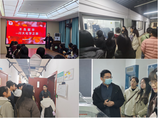 李峰教授首先对来访师生表示热烈欢迎,接着从学院历史沿革出发,介绍了我院从“四川高等学堂格致科”发展至如今的“四川大学化学学院”,充分体现了我院悠久的文化底蕴和丰厚的办学条件。随后,同学们依次参观了分析测试中心的大型仪器、有机化学的合成实验室以及分析化学实验室。同学们与老师积极交流,对我院老师的研究方向以及实验室条件展现了极大的兴趣。