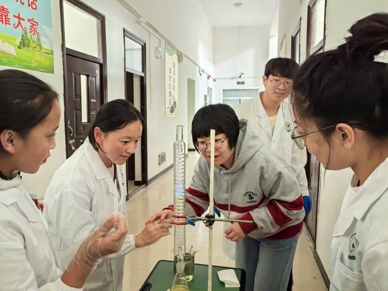 团队前往壤塘县中学、伊里中小学开展化学启航交流分享活动,成为孩子们走出大山看世界的任意门。吉拉左虎同学分享自己努力奋斗走出大凉山的励志求学之路,激励学生勇敢追梦,走出属于自己的康庄大道;李佳佳同学结合自身学习经历分享高效的学习方法,助推学生学习提质增效;杨征旋同学展示丰富多彩的大学生活,勉励学生努力考取心仪高校。团队成员通过叙求学经历、论学习方法、展大学生活,用自身经历为当地学生打开通往世界的大门,助力他们在思想上走向更广阔的世界。