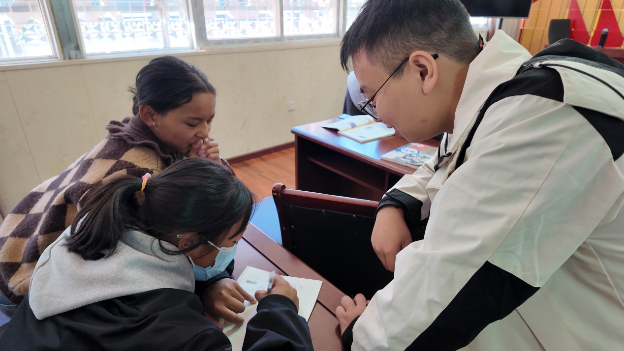团队与四川省疾控中心原驻村干部(汪良枢、杨志翔、熊荣)、四川省疾控中心驻壤塘县疾控中心挂职干部兰杰前往壤塘县中学与德育副校长雷刚、安保处主任贡保才让展开调研座谈。雷刚副校长表示,当地学生认知有限,期望团队与学校长期对接,定期为学生进行科学普及和课程辅导,帮助学生开拓视野、提高科学素养。最终,团队以初二一班为试点班级,初步进行帮扶对接工作。
