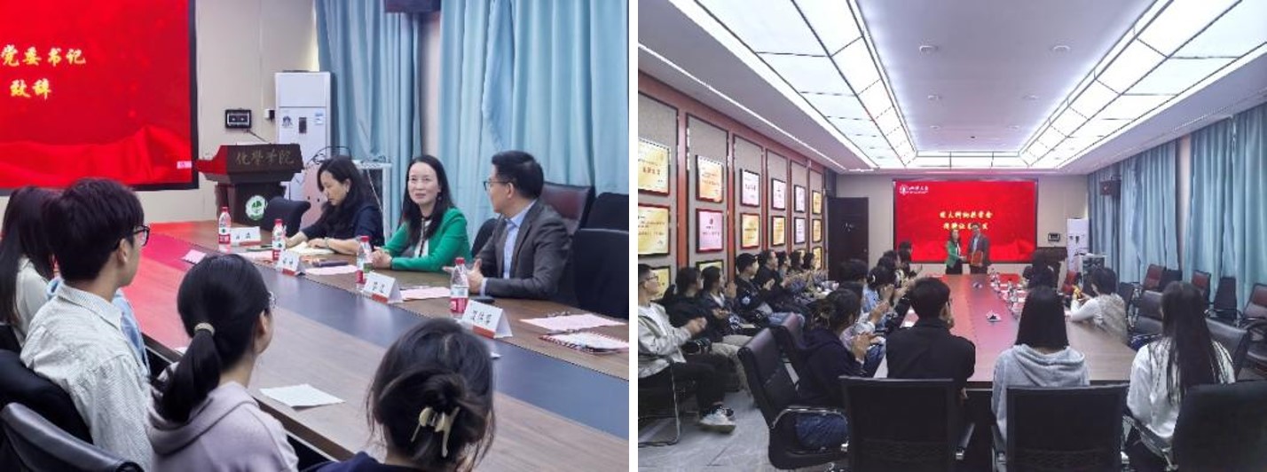 廖辽总经理难掩重返母校的喜悦,与师生共同见证了获奖同学的荣耀时刻。他分享了自己的求学和从业历程,并介绍了公司的基本情况与发展前景。他诚挚邀请化学学院学子未来加入埃夫科纳,共筑化学梦想,同时勉励获奖同学再接再厉,以所学回馈社会,为学院添彩,为国家贡献力量。