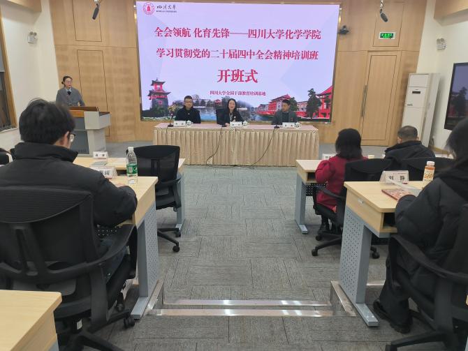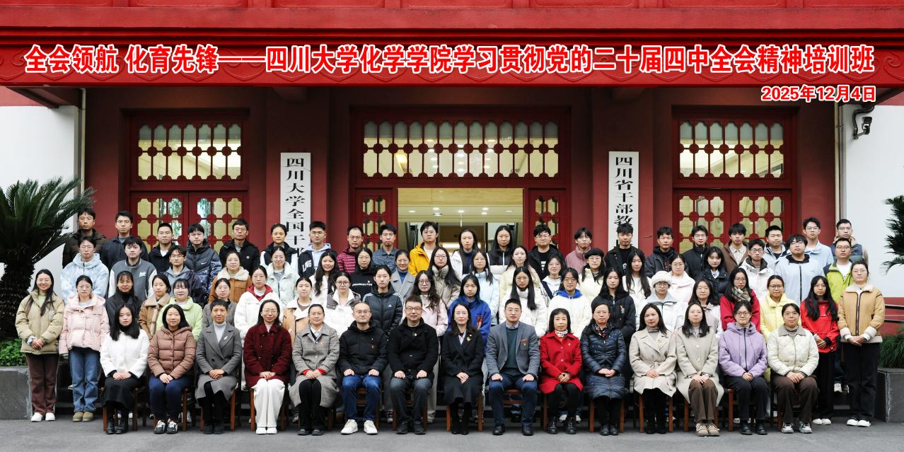 为深入学习宣传贯彻党的二十届四中全会精神,巩固深化学习教育成果,锲而不舍落实中央八项规定精神,2025年12月4日和26日分系统授课和现场教学,在四川大学全国干部培训基地举办了“全会领航,化育先锋”—四川大学化学学院学习贯彻党的二十届四中全会精神培训班。参加此次培训的学员有:学院党政领导,两委委员,教研室主任,党支部书记、支委,党员师生、发展对象和入党积极分子代表等。