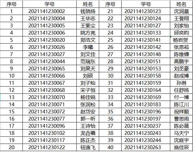 化学学院秉承公开、公正、公平的原则,通过自愿报名,笔试、面试等程序,确定拟录取以下40名同学进入2021级化学学院基地班,现予以公示: