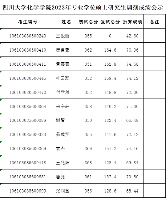 上一条:四川大学化学学院2023年专业学位硕士研究生调剂拟录取名单公示