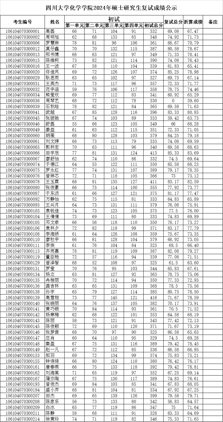 上一条:四川大学化学学院2024年硕士研究生拟录取名单公示