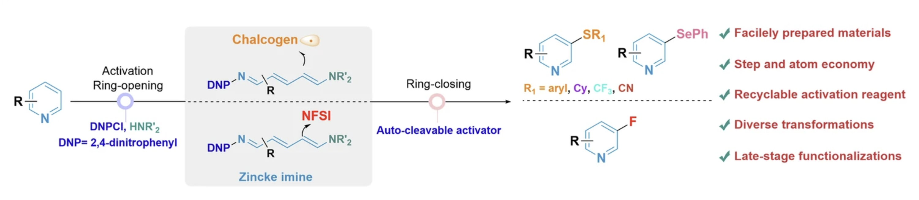 5. Li, S.; Tang, J.; Shi, Y.; Yan, M.; Fu, Y.; Su, Z.; Xu, J.; Xue, W.; Zheng, X.; Ge, Y.; Li, R.; Chen, H. *; Fu, H. *, C3 Selective chalcogenation and fluorination of pyridine using classic Zincke imine intermediates. Nature Commun. 2024, 15 (1)7420